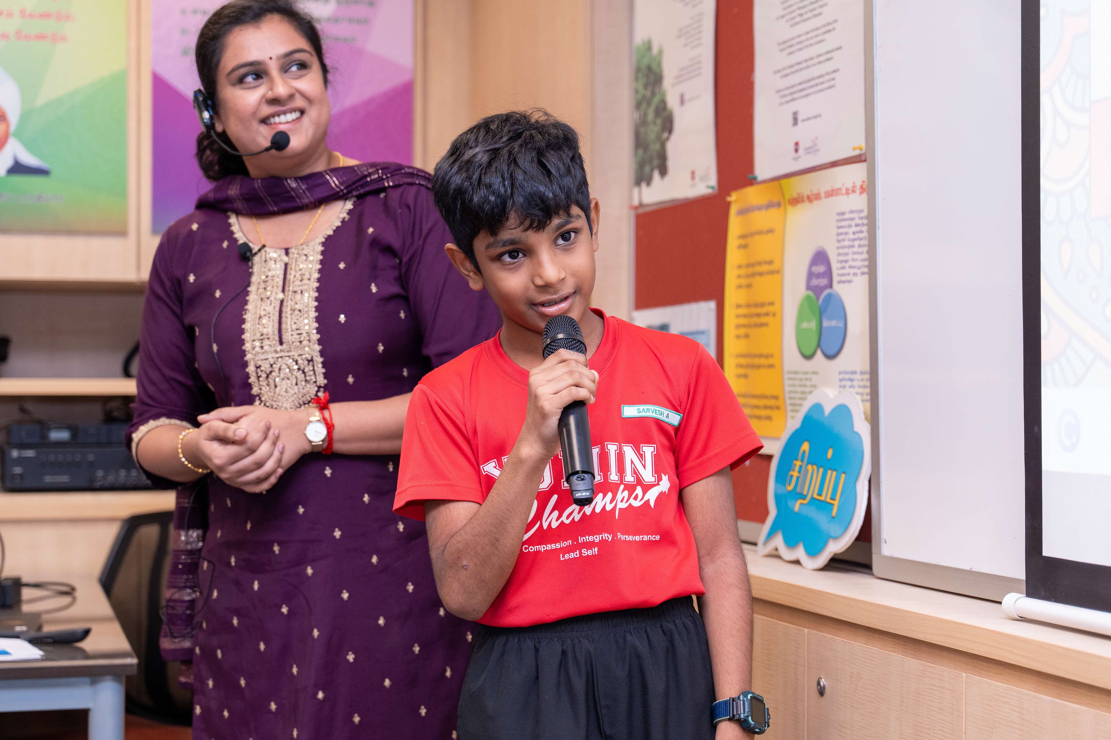 2025-ஆம் ஆண்டு நல்லாசிரியர் விருது பெற்ற ஆசிரியர், கல்வி அமைச்சின் பாடக்கலைத்திட்ட வரைவு மேம்பாட்டுப் பிரிவின் தமிழ்மொழிப் பகுதியின் அதிகாரி ஆகியோர் இந்த நிகழ்ச்சியின் அங்கங்களை வழிநடத்தினர். அவர்களுடன் இணைந்து தமிழ் முரசு நாளிதழின் செய்தியாசிரியரும் ஓர் அங்கத்தை வழிநடத்திப் பயனுள்ள தகவல்களைப் பகிர்ந்துகொண்டார்.